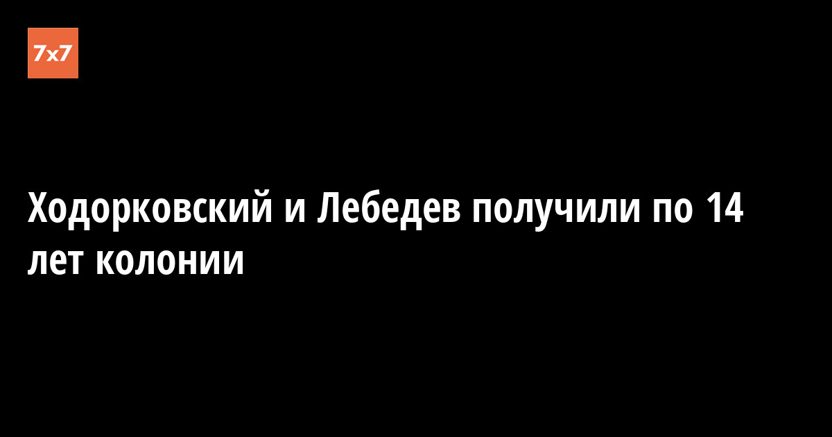 Экс-глава "ЮКОСа" Михаил Ходорковский приговорен к 14 годам колонии. Как передает РИА "Новости", об этом, оглашая приговор, заявил судья Виктор Данилкин. По его словам, Ходорковский будет отбывать наказание в колонии общего режима. По решению суда новое наказание бывшему руководителю "ЮКОСа" будет исчисляться с февраля 2007 года. Бывший руководитель МФО "Менатеп" Платон Лебедев по совокупности также получил 14 лет колонии.