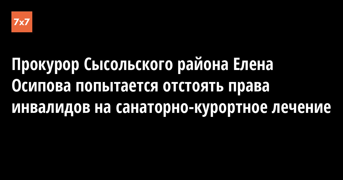 8 февраля Сысольский райсуд планирует приступить к рассмотрению 35 исковых заявлений районного прокурора, поданных в интересах граждан, к Коми региональному отделению Фонда социального страхования и его филиалу в селе Визинге. Прокурор намерен в судебном порядке обязать госучреждение предоставить инвалидам положенные им по закону санаторные путевки по профилю лечения. По сведениям «7x7», Сысольская прокуратура — единственный надзорный орган в республике, выступивший в защиту вышеозначенных прав социально незащищенных граждан.