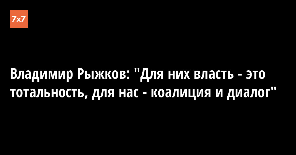 Рыжков нигде не говорил о своих претензиях на власть над 100% населения. Он как раз говорит о коалиции, о диалоге. Над 100% желает властвовать альфа-самец, властвовать жестко, и народу, кажется, это нравится. Недаром Бердяев говорил о женской основе, сути России, которой нужен тиран-властитель. Так что я согласен с одним - ПАРНАС никогда не выиграет выборы в России.