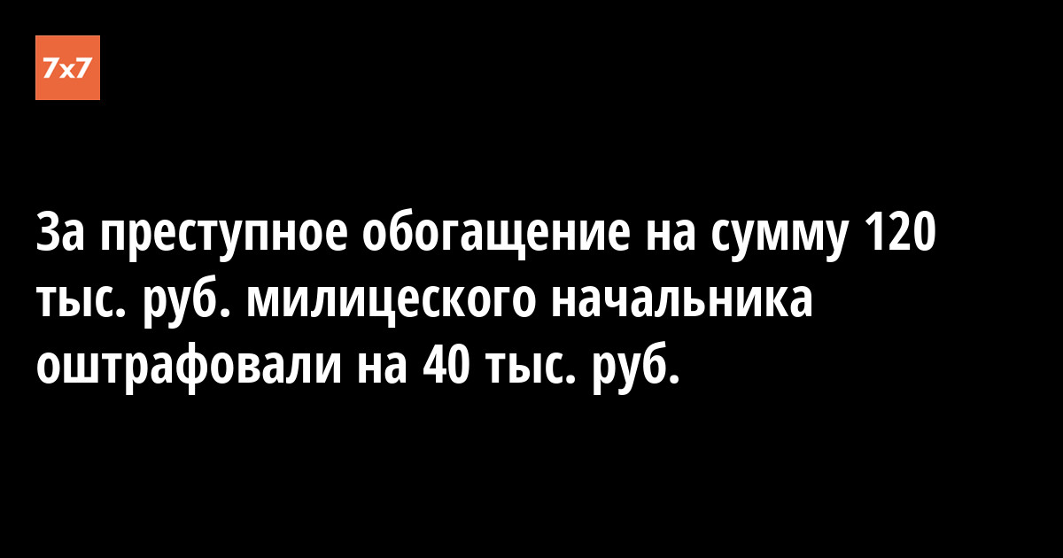 За преступное обогащение на сумму 120 тыс. руб. милицеского начальника оштрафовали на 40 тыс. руб.