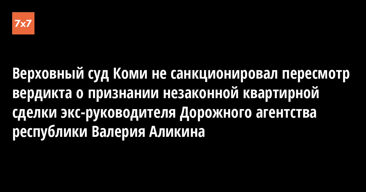 Сегодня, 21 апреля, Верховный суд Коми оставил в силе решение Сыктывкарского горсуда, отказавшегося пересматривать по вновь открывшимся обстоятельствам вынесенный в прошлом году вердикт о признании недействительным договора о бесплатной передаче в собственность бывшего руководителя Дорожного агентства Коми, ныне заместителя генерального директора Фонда поддержки инвестиционных проектов РК Валерия Аликина и его сына Даниила служебной квартиры, незаконно приватизированной и проданной ими впоследствии, и взыскании с чиновника в доход бюджета рыночной стоимости жилья в размере 3 млн. руб.