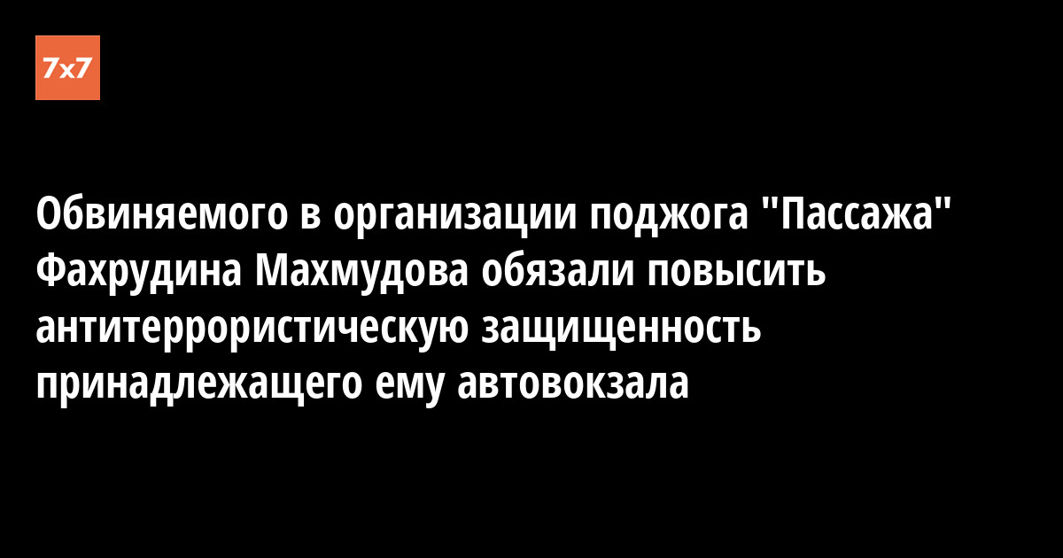 На сайте прокуратуры РК сегодня появилась информация о том, что Ухтинским горсудом принято решение об удовлетворении искового заявления прокурора города об обязании предпринимателя Фахрудина Махмудова принять в течение 2 месяцев меры к повышению антитеррористической защищенности принадлежащего ему здания ухтинского автовокзала. Как известно, г-н Махмудов является одним из обвиняемых в организации поджога торгового центра «Пассаж» в 2005 г., пожар в котором унес жизни 25 человек, и в настоящее время содержится в сыктывкарском СИЗО.