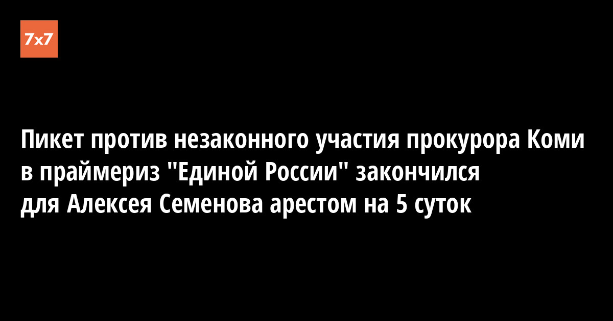 Как сообщал«7x7», производство по делу об административных правонарушениях, заключающихся в неповиновении сотрудникам полиции и нарушении правил проведения публичного мероприятия, было заведено в отношении г-на Семенова после того, как он 16 августа попытался провести индивидуальный пикет у здания прокуратуры Коми, протестуя против незаконного участия прокурора Коми Владимира Поневежского в праймериз Общероссийского народного фронта и партии «Единая Россия». Пикет закончился для Алексея Семенова жестким задержанием и водворением в спецприемник, откуда он спустя сутки был отпущен по решению судьи Кристелевой до 1 сентября – дня основного разбирательства.