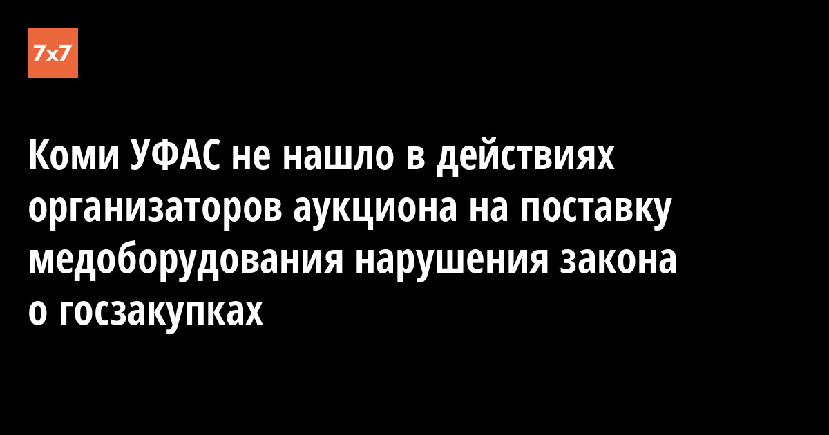 Между тем, по мнению гендиректора ООО «ТПК «Галиэя» Альберта Терликова, который от корреспондента «7x7» узнал об итогах сегодняшнего рассмотрения его жалобы, в формировании единого лота на разное медоборудование проглядывается стремление создать исключительные условия для конкретного участника торгов. Собеседник «7x7» не исключил возможности обжалования решения Коми УФАС в судебном порядке.
