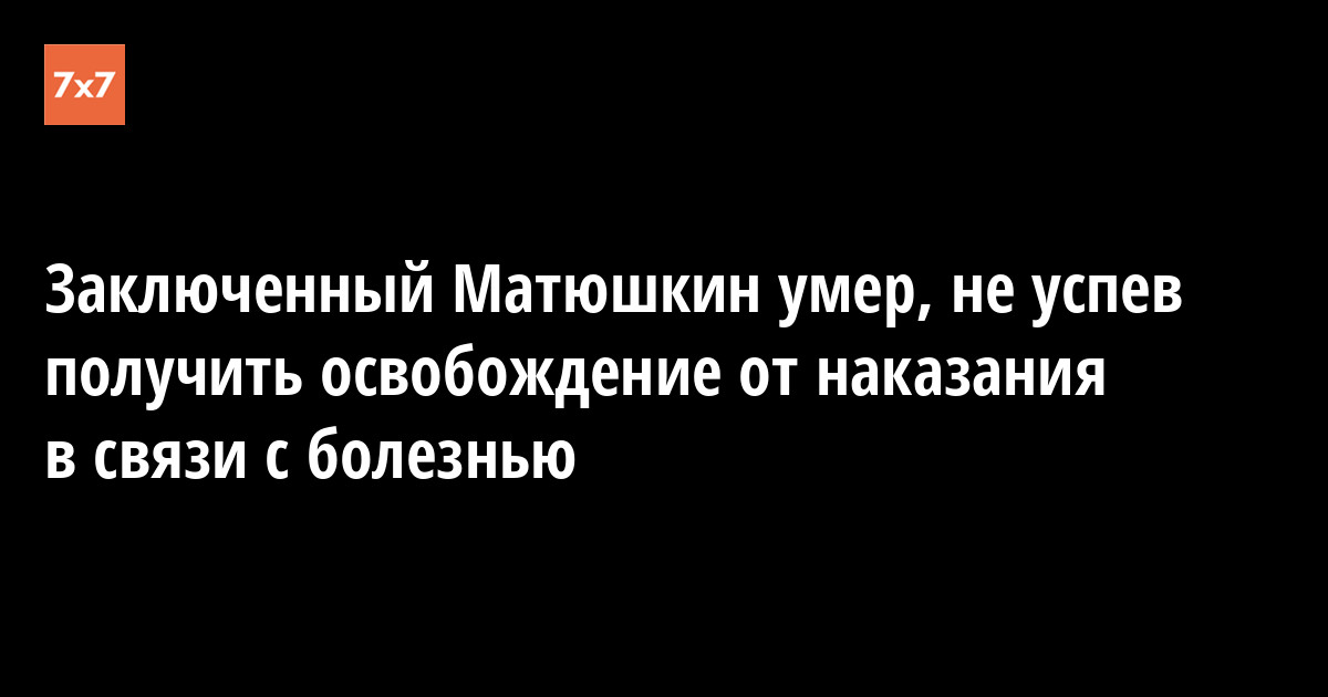 О смерти осужденного Матюшкина г-на Дидюка проинформировал по телефону источник в администрации лагерной больницы. Тот сообщил, что заключенный умер 9 сентября в 14.30. За два дня до смерти ему, очевидно, после визита г-на Дидюка, наконец, поменяли постельное белье и взялись за оформление документов на освобождение по 81-й статье УК («Освобождение от наказания в связи с болезнью»).