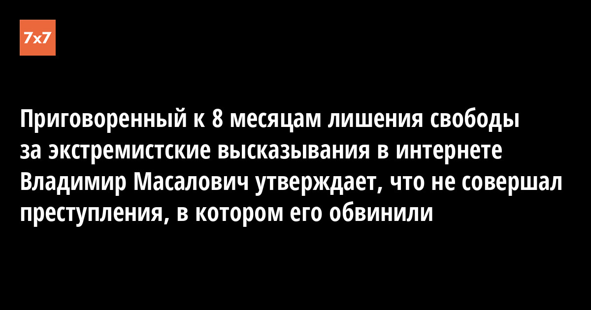 Сегодня после оглашения приговора Владимир Масалович по телефону заявил корреспонденту «7x7» о том же. По его словам, от решения судьи Елены Одинцовой он «в шоке».