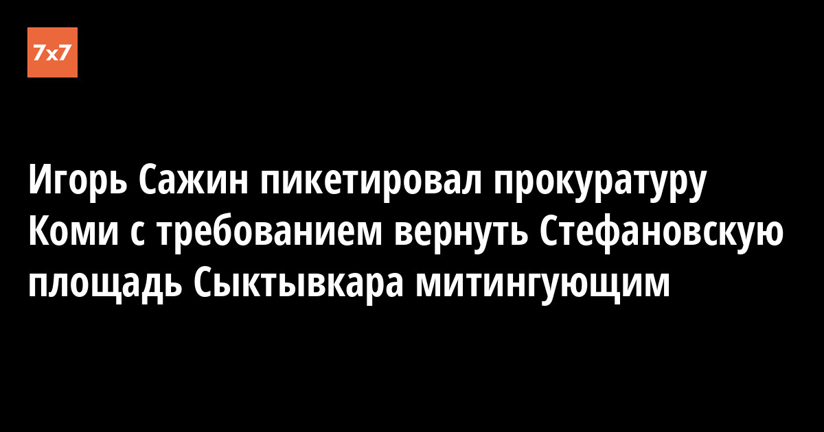 Председатель Коми правозащитной комиссии (КПК) «Мемориал» Игорь Сажин провел сегодня индивидуальный пикет у здания прокуратуры Коми. Правозащитник добивается отмены постановления администрации Сыктывкара, из-за которого главная, Стефановская, площадь столицы Коми с июля недоступна для проведения публичных мероприятий.