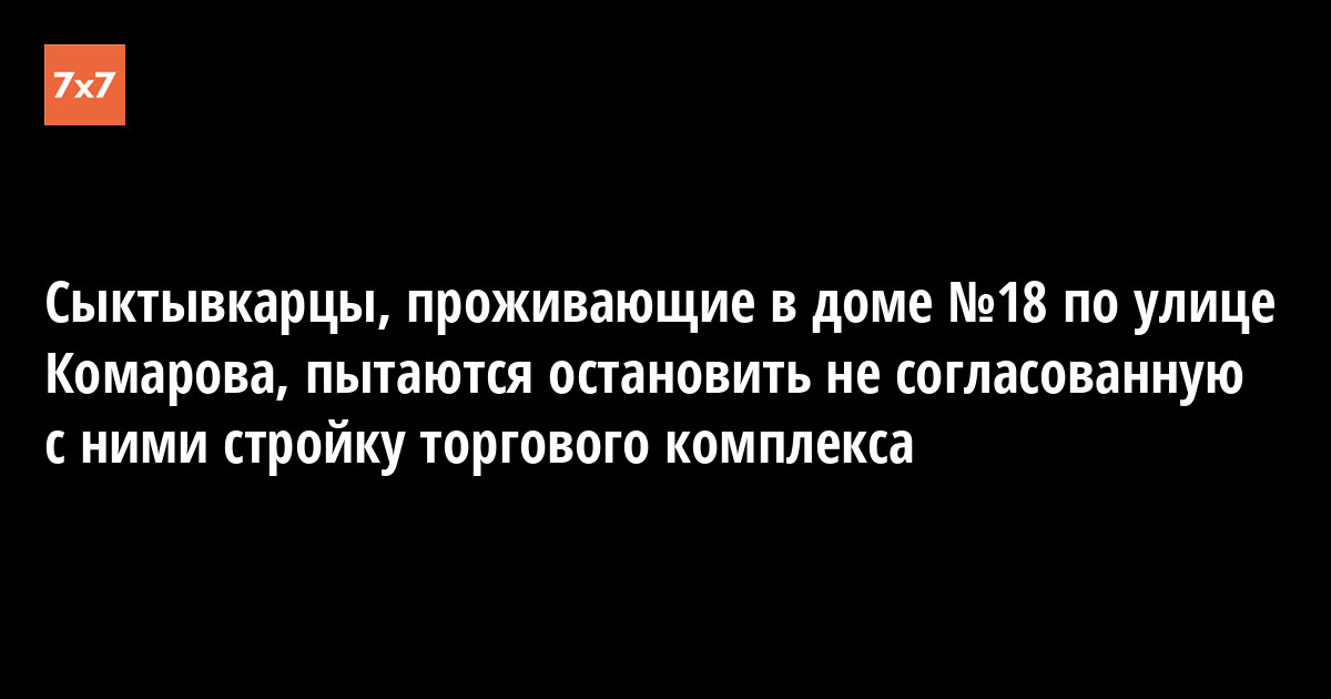 Сегодня, 20 сентября, жители дома №18 по улице Комарова Эжвинского района Сыктывкара обратились в суд с исковым заявлением о признании незаконными договора аренды земельного участка и разрешения на строительство, выданного администрацией МО ГО «Сыктывкар» коммерческой структуре на возведение торгового комплекса рядом с местом жительства заявителей. Сегодня же жильцы вышеназванного дома прислали в «7x7» открытое письмо с преамбулой: «Помогите, нас не слышат!»