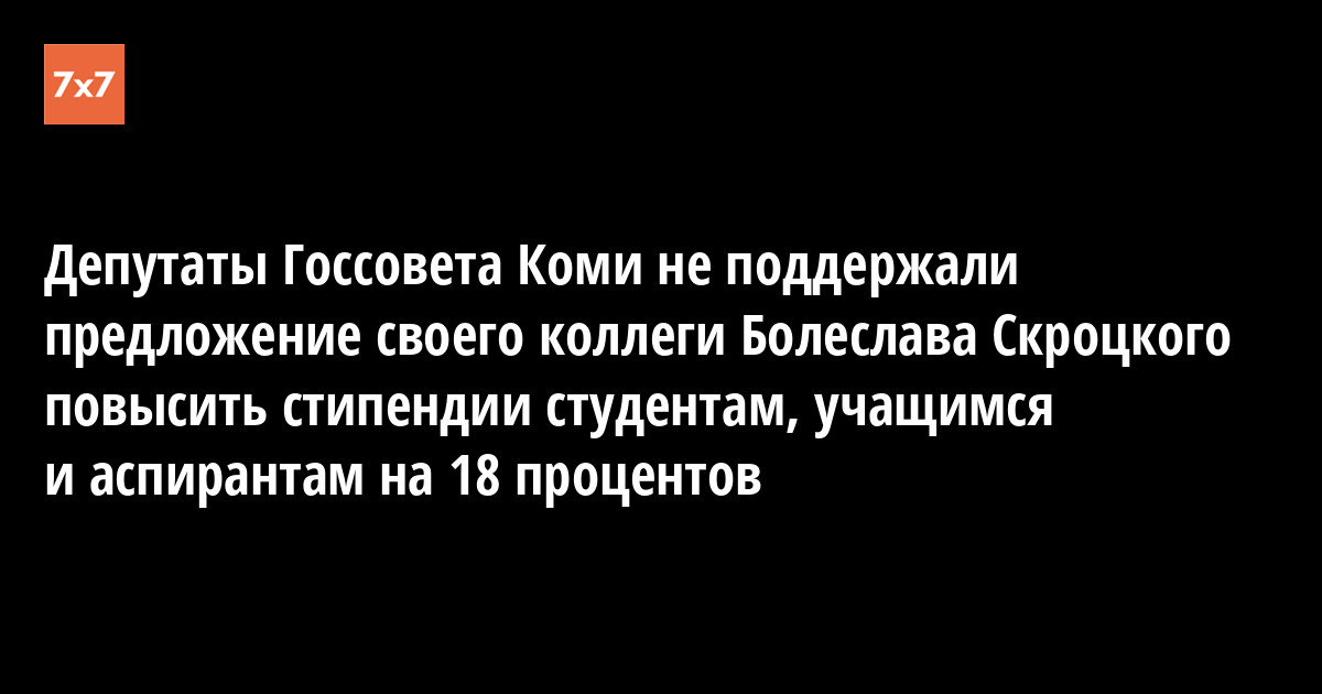 Болеслав Скроцкий обратил внимание коллег, что стипендии не поднимались с 2008 года, столь незначительное повышение давно «съела инфляция». Повышение стипендий на 18 процентов, по его подсчетам, потребует увеличить расходы бюджета чуть более чем на четыре миллиона рублей. Этот вопрос уже обсуждался на Комитете Госсовета РК по социальной политике, по этому поводу уже отправлялось письмо в министерство образования, но никакого внятного ответа не получено.
