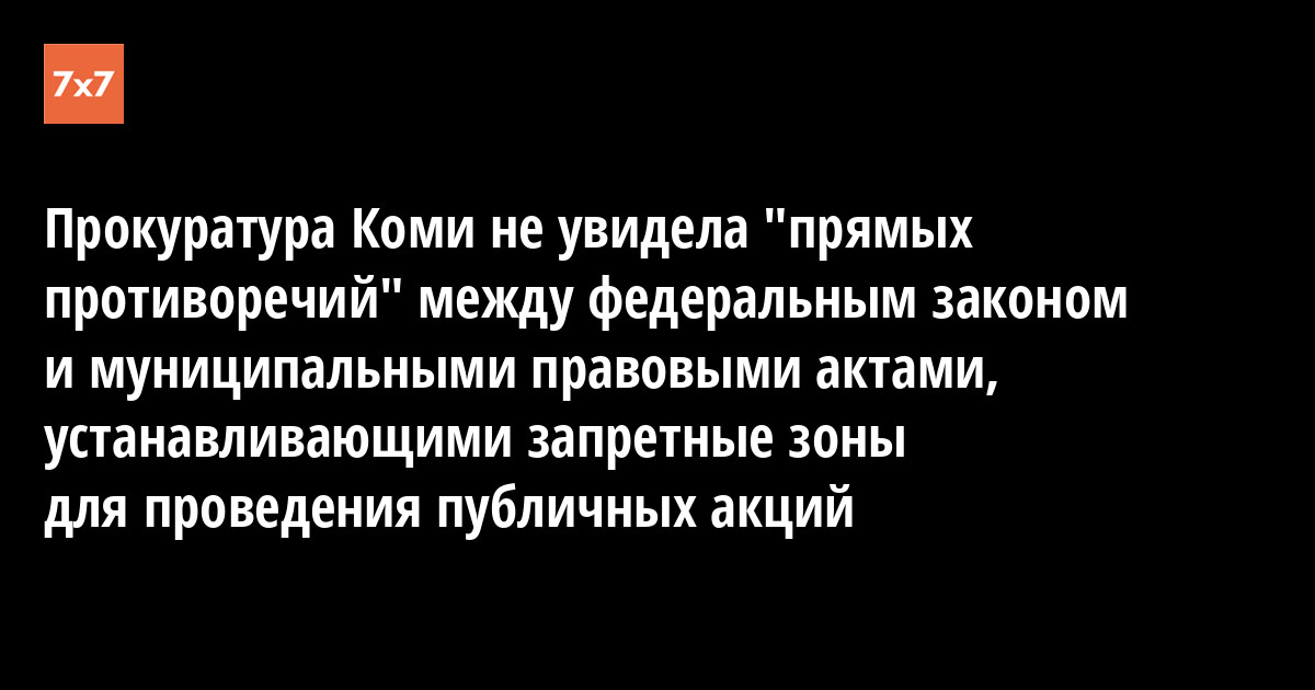 Проанализировав нормативные акты муниципальных образований Коми, устанавливающие запретительные границы для проведения публичных акций у зданий со специальным правовым режимом, прокуратура республики не нашла их противоречащими федеральному закону «О собраниях, митингах, демонстрациях, шествиях и пикетированиях».