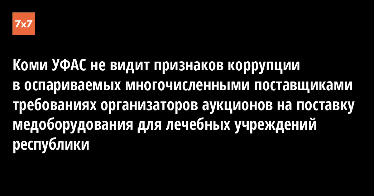 Коми УФАС не видит признаков коррупции в оспариваемых многочисленными поставщиками требованиях организаторов аукционов на поставку медоборудования для лечебных учреждений республики