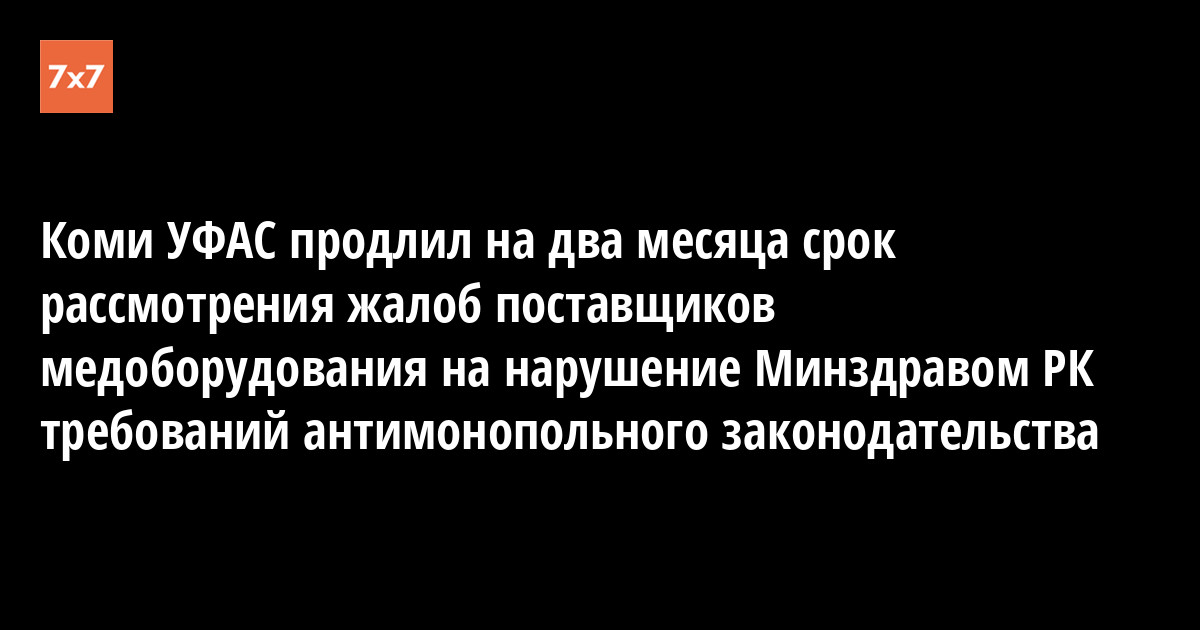 Коми УФАС продлил на два месяца срок рассмотрения жалоб поставщиков медоборудования на нарушение Минздравом РК требований антимонопольного законодательства