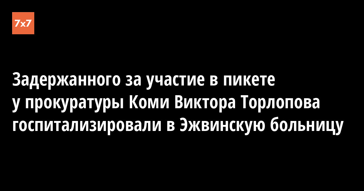 После того, как Виктор Торлопов пожаловался на головную боль и общее недомогание, полицейские отвезли его из спецприемника в Эжвинскую больницу, врачи которой настояли на госпитализации задержанного. Дозвонившемуся до него корреспонденту «7x7» г-н Торлопов высказал опасение насчет того, что обстоятельства его задержания могут отпугнуть от участия в акции потенциальных пикетчиков.