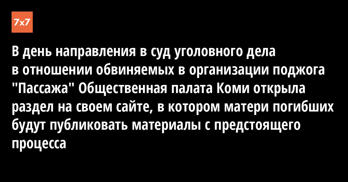 В день направления в суд уголовного дела в отношении обвиняемых в организации поджога "Пассажа" Общественная палата Коми открыла раздел на своем сайте, в котором матери погибших будут публиковать материалы с предстоящего процесса