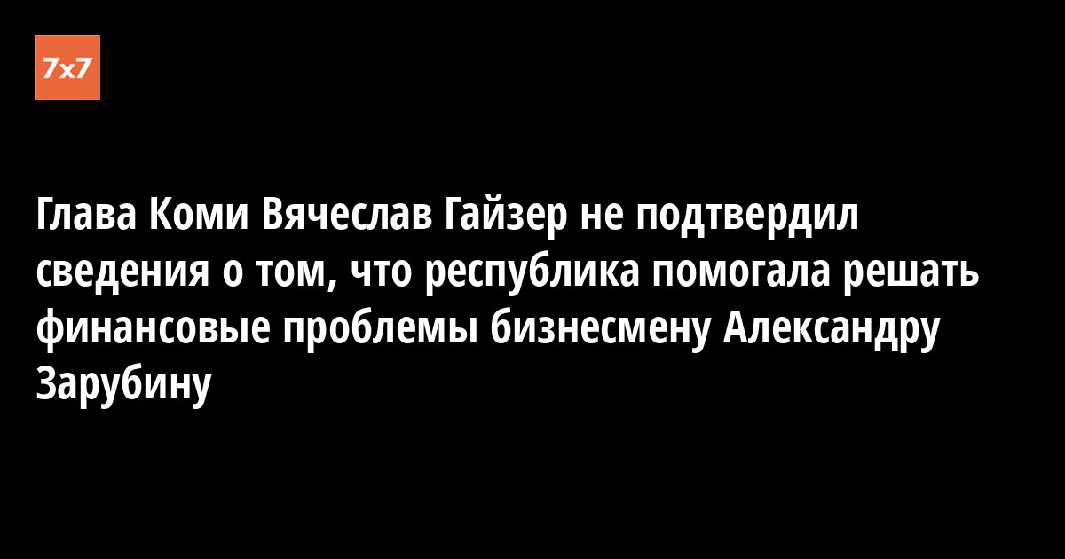 Глава Коми Вячеслав Гайзер не подтвердил сведения о том, что республика помогала решать финансовые проблемы бизнесмену Александру Зарубину