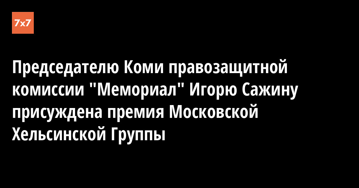 Председатель Коми правозащитной комиссии (КПК) «Мемориал» Игорь Сажин стал лауреатом правозащитной премии Московской Хельсинской Группы (МХГ) за 2011 год в номинации «За вклад в правозащитное образование». Все лауреаты ежегодной премии МХГ в 10 номинациях были названы сегодня, 30 ноября.
