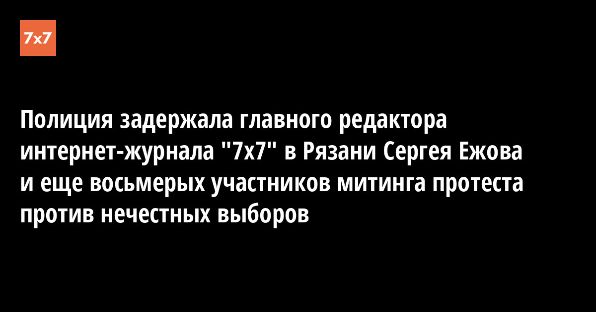 Как стало известно «7x7», вчера во время несанкционированного митинга против фальсификаций на выборах в Госдуму РФ, состоявшемся на площади Ленина в Рязани, полиция задержала девятерых митингующих, в том числе главного редактора интернет-журнала «7х7» Сергея Ежова. Как и прочим задержанным, ему вменяется нарушение ч.2 ст.20.2 («Нарушение установленного порядка проведения собрания, митинга, демонстрации, шествия или пикетирования») и ст. 19.3 КоАП РФ («Неповиновение законному распоряжению сотрудника полиции»).