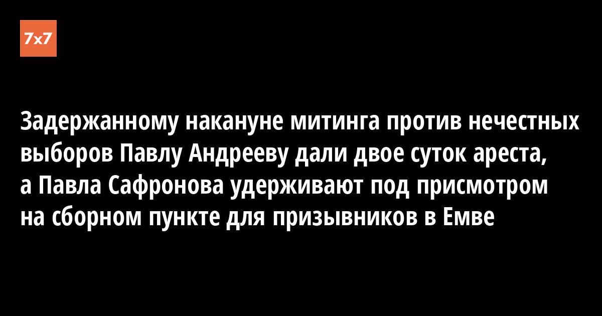 Член Коми правозащитной комиссии (КПК) «Мемориал» Александр Кикоть поделился с «7x7» последней информацией, касающейся его коллег по деятельности в КПК Павла Андреева и блогера Павла Сафронова, задержанных полицией Сыктывкара накануне стихийного митинга протеста против нечестных выборов, состоявшегося вчера, 10 декабря, на Театральной площади столицы Коми.