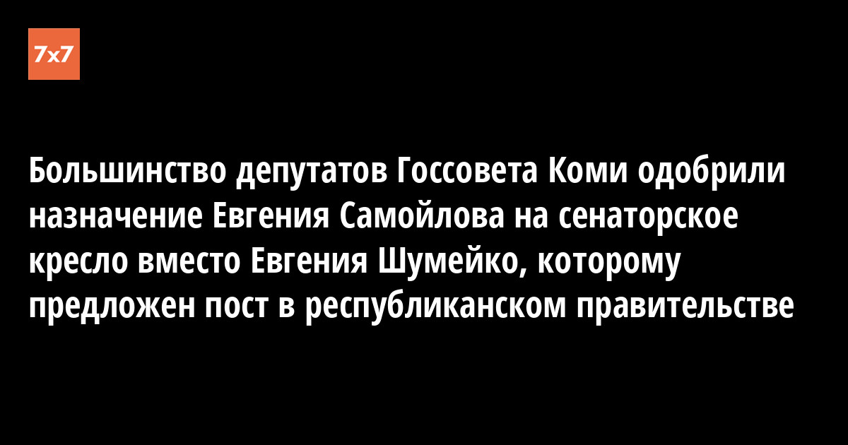 На сенаторском посту Евгений Самойлов должен заменить Евгения Шумейко, который на днях принял приглашение главы Коми Вячеслава Гайзера перейти на работу в республиканское правительство и курировать вопросы развития угольной отрасли.