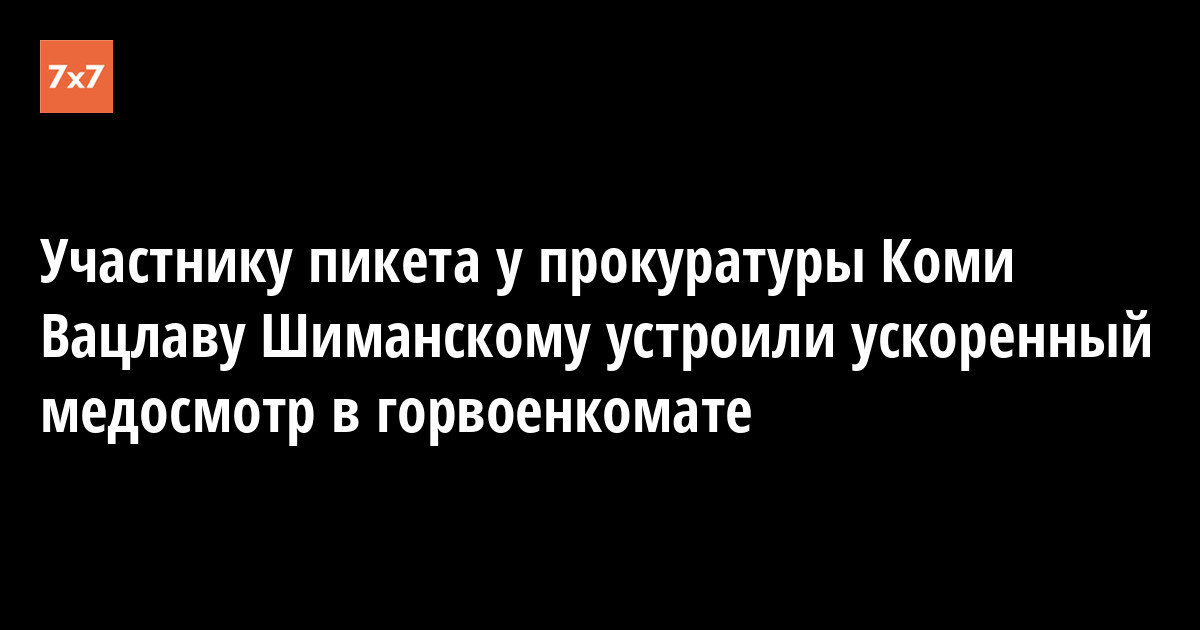 В разговоре с корреспондентом «7x7» Вацлав Шиманский не стал связывать явную небрежность медика со своим участием в пикетировании прокуратуры Коми, однако отметил еще одно удивившее его обстоятельство: довольно продолжительная, как правило, процедура прохождения медкомиссии закончилась быстро – призывника Шиманского «прогнали» по кабинетам вне общей очереди. Чтобы добиться от горвоенкомата должного медицинского освидетельствования, 8 декабря с.г. Вацлав Шиманский обратился с соответствующим заявлением в суд…
