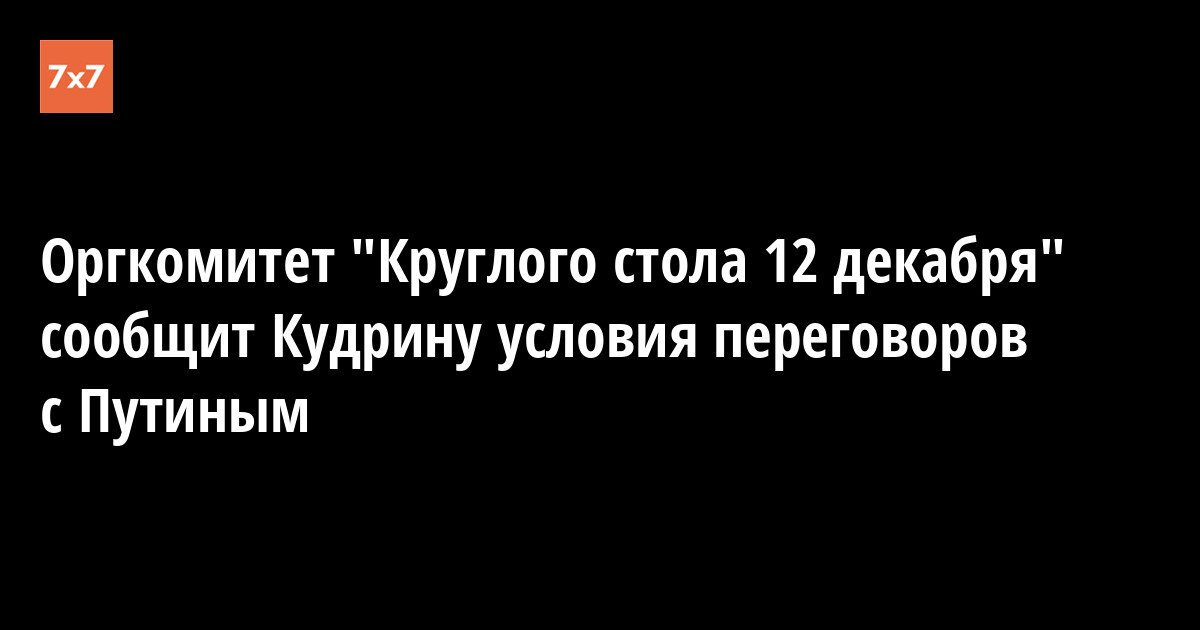 Оргкомитет "Круглого стола 12 декабря" одобрил инициативу бывшего министра финансов Алексея Кудрина о переговорах между властью и оппозицией. В заявлении оргкомитета говорится, что "принципы и условия проведения таких переговоров будут сообщены Кудрину в течение двух дней". В состав оргкомитета входят экс-премьер Михаил Касьянов, политолог Георгий Сатаров и правозащитница Людмила Алексеева.