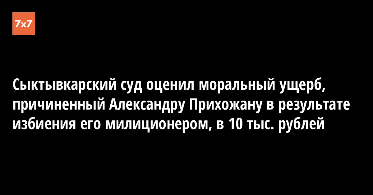 Добившись для своего обидчика уголовного наказания, г-н Прихожан обратился в суд с просьбой обязать УМВД по Сыктывкару, Минфин Коми и Управление федерального казначейства по РК компенсировать ему причиненный милиционером моральный вред, каковой оценил в 200 тыс. руб.