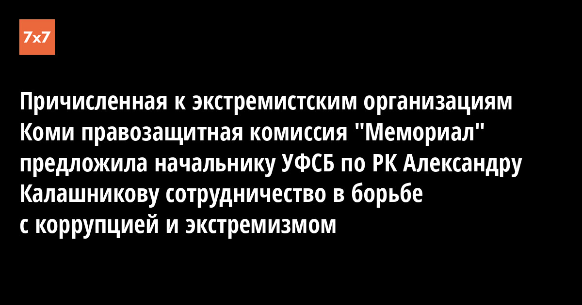 Коми правозащитная комиссия (КПК) «Мемориал» пригласила начальника Управления ФСБ по Коми Александра Калашникова, который в своем скандальном докладе причислил вышеназванную общественную организацию к экстремистским, на расширенное заседание правления комиссии, проведение которого запланировано на ближайшее воскресенье.