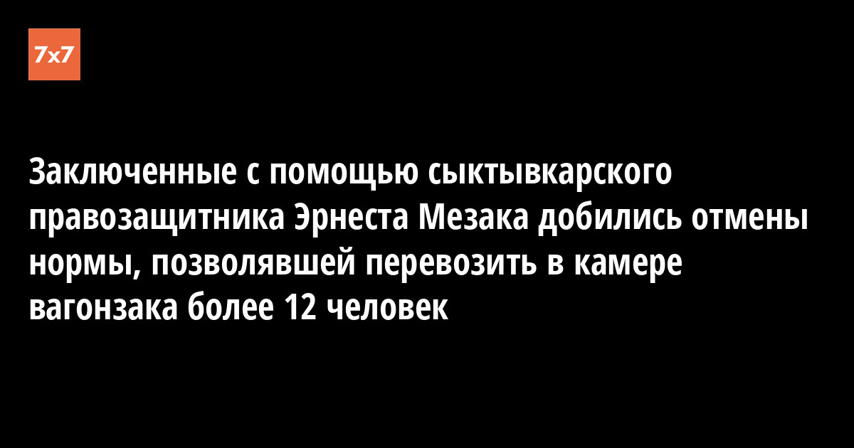 Вчера, 24 января, Верховный суд РФ удовлетворил жалобу Руслана Алиева, Вячеслава Газукина и Константина Бабошина и признал недействующей норму Инструкции по служебной деятельности специальных подразделений уголовно-исполнительной системы по конвоированию, позволяющую перевозить в камерах специальных вагонов ФСИН РФ от 13 до 16 заключенных. Интересы заявителей представлял юрист фонда «Общественный вердикт», член правления Коми правозащитной комиссии «Мемориал» Эрнест Мезак.