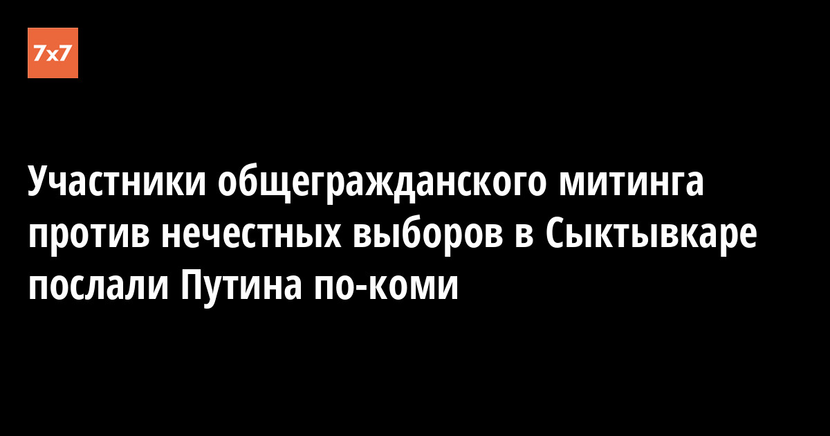 Сегодня, 4 февраля, в Сыктывкаре состоялся общегражданский митинг против Путина и нечестных выборов, собравший более 200 человек. Участники митинга принесли плакаты и транспаранты с надписями «Мы - против власти жуликов и воров», «За честные выборы», «Свободу рабу на галерах», «Чурова, Шабаршину — в отставку, Путина — к бандерлогам», «Россия — не Северная Корея, плакать не будем», «Требуем расследовать гайзерскую аномалию» и скандировали лозунги «Россия без Путина», «Раз, два, три — Путин уходи», «Путин - мун татысь» и «Полиция — с народом, не служи уродам».