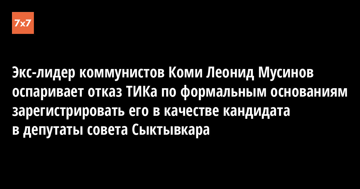Вчера Сыктывкарский городской суд приступил к рассмотрению жалобы бывшего лидера КПРФ в Коми Леонида Мусинова, оспаривающего отказ Территориальной избирательной комиссии (ТИК) Сыктывкара зарегистрировать его в качестве кандидата в депутаты совета города.