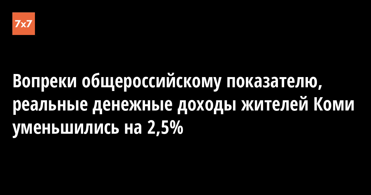 Согласно опубликованным на днях данным Росстата о социально-экономическом положении субъектов РФ с января по ноябрь 2011 года, реальные денежные доходы жителей Коми, по сравнению с тем же периодом 2010 года, уменьшились на 2,5%. При этом в целом по России денежные доходы населения за отчетный период выросли на 0,4%.