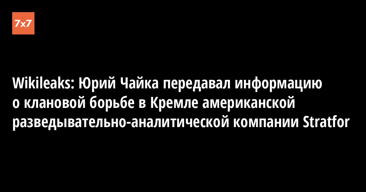 Генеральный прокурор России Юрий Чайка передавал американской стороне информацию о клановой борьбе в Кремле. Как передает Газета.Ру, об этом свидетельствуют файлы американской разведывательно-аналитической компании Stratfor, которые опубликованы на сайте Wikileaks. Помимо Чайки у Stratfor есть и другие источники высокого ранга из России. По данным ресурса, Чайке присвоен кодовый номер RU101 и дается максимальная оценка доверия "1".