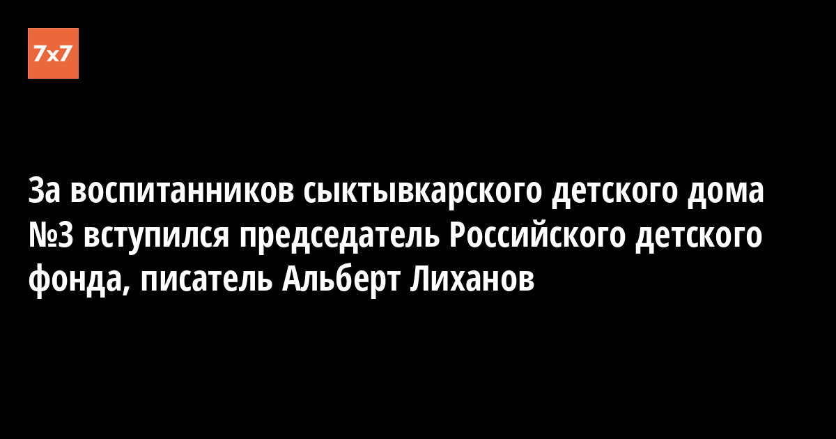 Как стало известно «7x7», озабоченность судьбой воспитанников сыктывкарского детского дома №3, который власти планируют объединить с детским домом-школой №1 имени А.А.Католикова, выразил председатель Российского детского фонда Альберт Лиханов, обратившийся по этому поводу к главе Коми Вячеславу Гайзеру с письменным посланием.