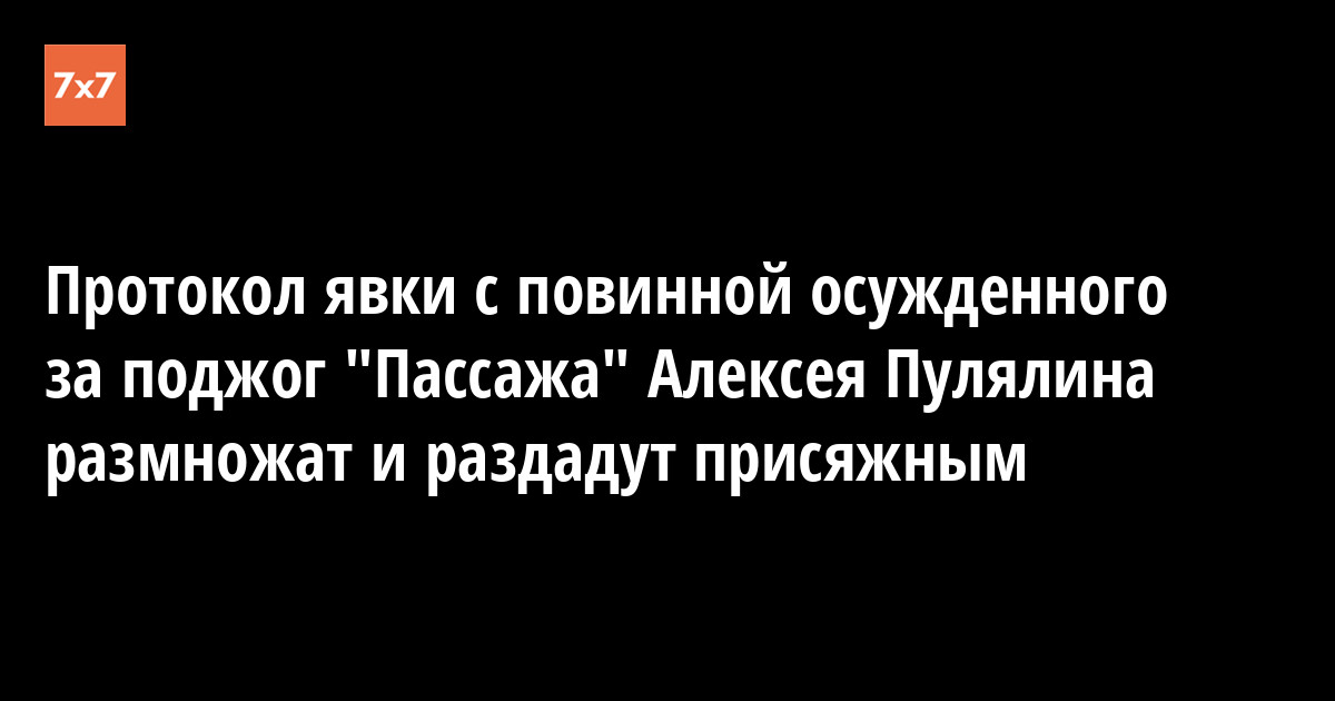 Вчера, 13 марта, на продолжающемся в Верховном суде Коми рассмотрении уголовного дела в отношении Валентина Гаджиева и братьев Фахрудина и Асрета Махмудовых, обвиняемых в организации поджога ухтинского торгового центра (ТЦ) «Пассаж» в 2005 году, жертвами пожара в котором стали 25 человек, сторона обвинения, продолжая представлять коллегии присяжных свои доказательства виновности подсудимых, огласила протокол явки с повинной Алексея Пулялина, который на пару с Антоном Коростелевым был признан виновным в поджоге «Пассажа» и осужден к пожизненному заключению. Суд удовлетворил ходатайство защитника Фахрудина Махмудова, адвоката Константиан Рыбалова, предложившего размножить вышеназванный протокол и вручить по копии каждому из присяжных для того, чтобы они могли сравнивать изложенные в нем факты с другими доказательствами, которые будут в дальнейшем исследоваться в ходе судебного разбирательства.