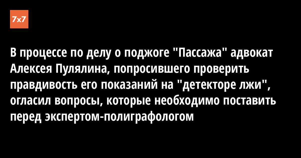 В процессе по делу о поджоге "Пассажа" адвокат Алексея Пулялина, попросившего проверить правдивость его показаний на "детекторе лжи", огласил вопросы, которые необходимо поставить перед экспертом-полиграфологом
