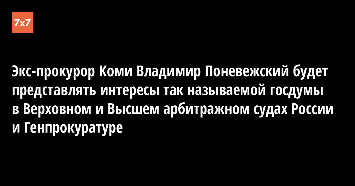 Как стало известно «7x7» из сообщения «РИА Новости», сегодня спикер т.н. госдумы Сергей Нарышкин подписал распоряжение о назначении экс-прокурора Коми Владимира Поневежского, члена комитета по конституционному законодательству и госстроительству, представителем нижней палаты парламента в Верховном и Высшем арбитражном судах России и Генпрокуратуре.