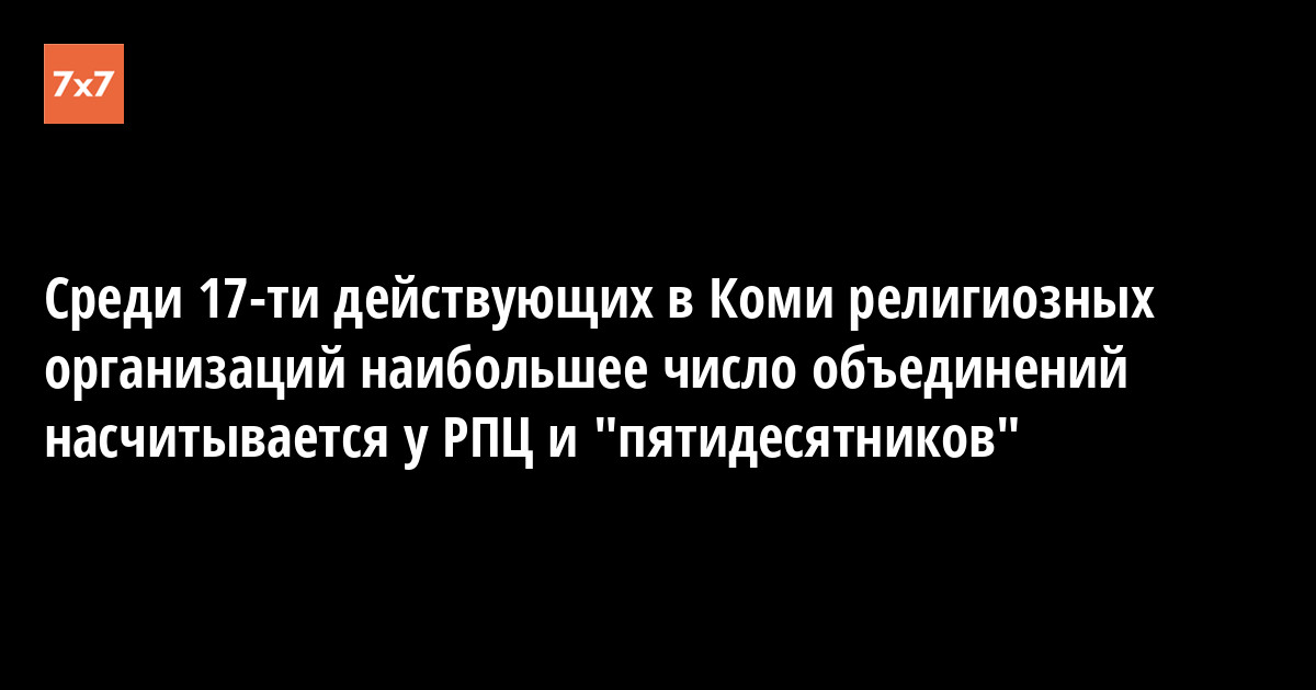 Согласно данным Комистата, опубликованным сегодня на сайте ведомства, среди 17-ти религиозных организаций, зарегистрированных Управлением Минюста РФ по Коми, к началу текущего года наибольшее количество объединений в республике было у Русской православной церкви (РПЦ) и христиан-«пятидесятников».