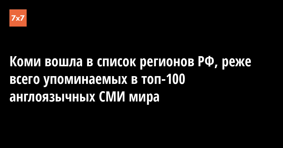 По итогам исследования «Восприятие регионов РФ ведущими англоязычными СМИ за 2011 год», проведенного аналитическим агентством «Смыслография» и компанией Dow Jones и опубликованным позавчера на сайте вышеназванного агентства, Коми оказалась в списке аутсайдеров — среди субъектов РФ, реже всего упоминаемых в топ-100 ведущих англоязычных СМИ мира.