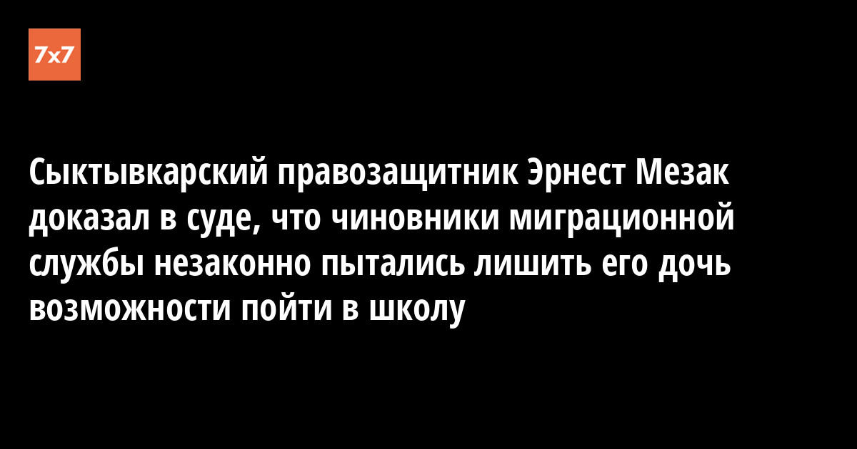 На днях судья Сыктывкарского горсуда Татьяна Веселкова признала незаконными действия Федеральной миграционной службы, отказавшейся из-за неуплаты штрафа регистрировать по новому месту жительства жену и семилетнюю дочь известного сыктывкарского правозащитника Эрнеста Мезака, в результате чего девочку, которая 1 сентября должна пойти в первый класс, отказывались записывать в школу по месту жительства, выбранную для нее родителями.