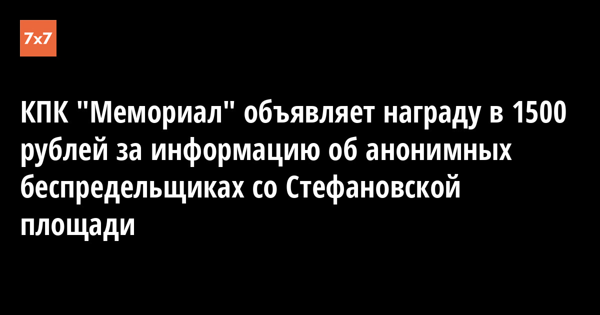 Вчера утром на сайте «7x7» были опубликованы фотографии анонимных врагов свободной прессы и аудиозапись с угрозами, сделанные на Стефановской площади. После этого член правления КПК «Мемориал» Эрнест Мезак на своей странице в социальной сети «Вконтакте» написал, что готов выплатить 1000 рублей тому, кто первым предоставит достоверную информацию о личностях правонарушителей.