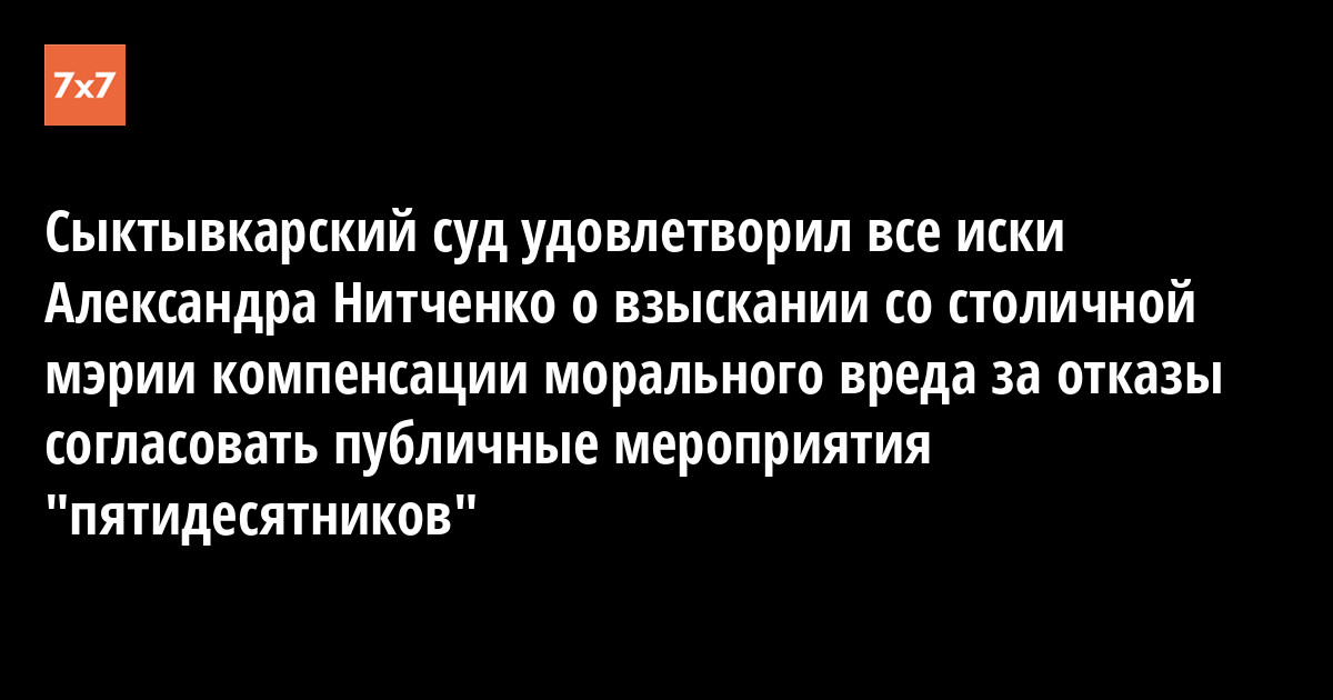 Сыктывкарский суд удовлетворил все иски Александра Нитченко о взыскании со столичной мэрии компенсации морального вреда за отказы согласовать публичные мероприятия "пятидесятников"