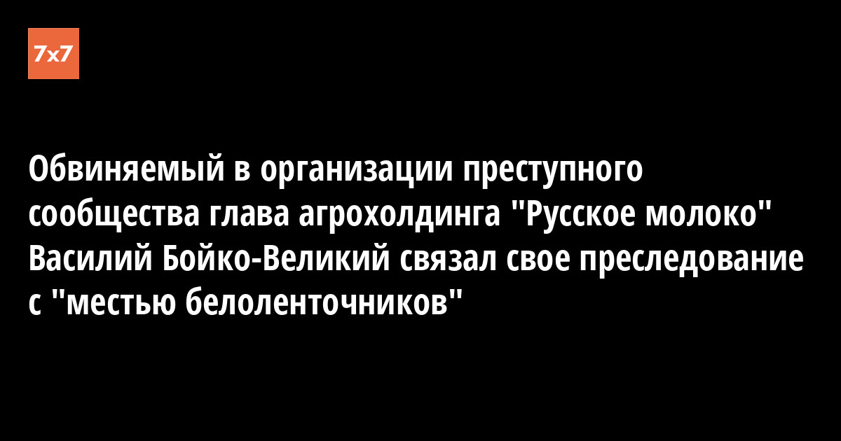 Президент агрохолдинга "Русское молоко" Василий Бойко-Великий, которому предъявлено обвинение в организации преступного сообщества, связал свое преследование с "местью белоленточников" из-за требования арестовать участниц Pussy Riot. Об этом говорится в заявлении совета директоров "Русского молока". "Сотрудники агрохолдинга занимают активную православную патриотическую позицию. В период президентских выборов 2012 года они провели целый ряд митингов и выступлений в поддержку избрания президентом России Владимира Путина. Василий Бойко-Великий также в свое время потребовал ареста хулиганок и кощунниц из так называемой группы Pussy Riot. Месть "белоленточников" и "оранжистов" не заставила себя долго ждать", – говорится в заявлении.