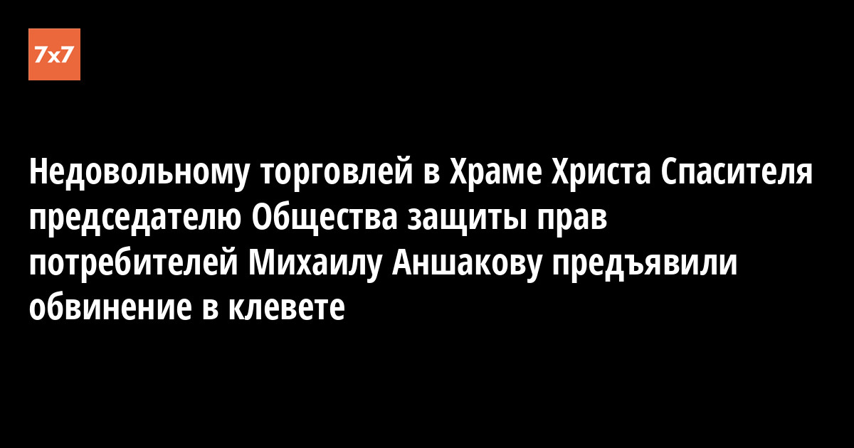 Председателя Общества защиты прав потребителей Михаила Аншакова, пожаловавшегося на незаконную торговлю в храме Христа Спасителя, вызвали в прокуратуру, где предъявили обвинение по административной статье "клевета", сообщает Интерфакс. "Судя по отсутствию ответа на заявление ОЗПП, прокуратура в деятельности фонда ХХС нарушений не нашла или не искала. Признаки нарушения закона прокуроры усмотрели в деятельности самого Общества защиты прав потребителей, руководитель которого может быть обвинен в клевете на руководство фонда храма Христа Спасителя и в организации деятельности экстремистской организации", – говорится в сообщении ОЗПП.