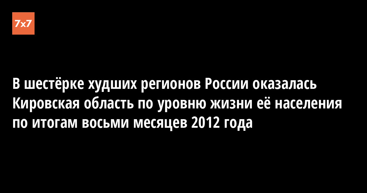 Министерство регионального развития России опубликовало доклад «О ситуации в экономике, финансово-банковской и социальной сферах субъектов Российской Федерации в январе-августе 2012 года». Кировская область по сводному индексу доходов и занятости населения (85,4%) заняла в рейтинге министерства 78-е (из 83-х возможных) место среди регионов страны.