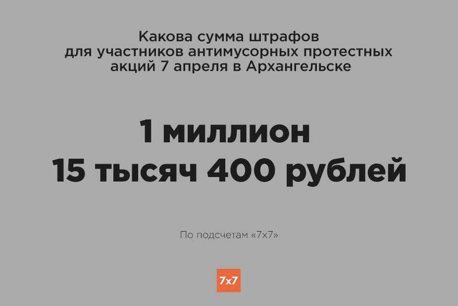 Самый крупный штраф суд назначил Дмитрию Секушину — 200 тыс. руб. (ранее он уже был оштрафован по статье 20.2 КоАП РФ, поэтому при повторном нарушении наказание увеличилось). Самый маленький штраф у Александра Пескова — 500 руб. Но он назначен за нарушение правил дррожного движения. В протоколе указано, что 7 апреля активист во время демонстрации двигался по проезжей части дороги при наличии тротуара (часть 1 статьи 12.29 КоАП). Александра Ларионова оштрафовали трижды — за участие в демонстрации и митинге суд назначил ему по 14 тыс. руб. штрафа, еще 900 руб. — за неповиновение законному требованию сотрудника полиции.