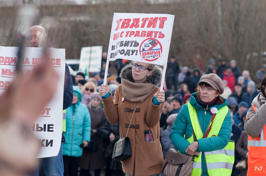 — Говорят, что на этот межмуниципальный полигон будут возить мусор отовсюду: из Архангельска, из Северодвинска… У нас и так завод плохо влияет на экологию [градообразующим предприятием в Новодвинске является Архангельский целлюлозно-бумажный комбинат], так еще и нас хотят завалить мусором. Я против, — добавила участница митинга Валентина Распутина.
