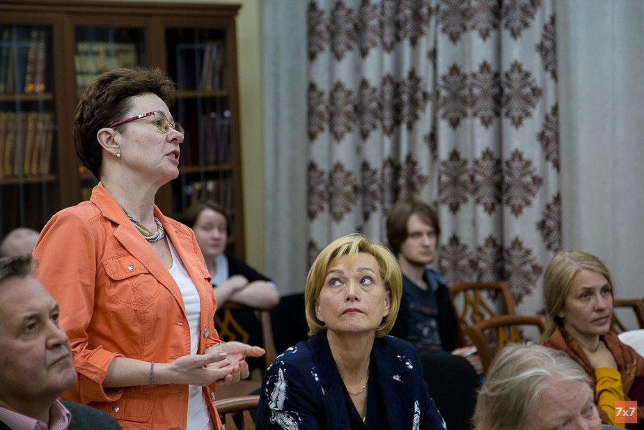 Встреча с сотрудниками Музея истории ГУЛАГа из Москвы проходила в научной библиотеке САФУ, в музее его истории. На нее пришли в основном люди среднего и старшего возраста: ученые университета, исследования которых касаются темы репрессий и непрофессионалы, которые собирают сведения о репрессированных родственниках самостоятельно. Всего собралось около 50 человек.