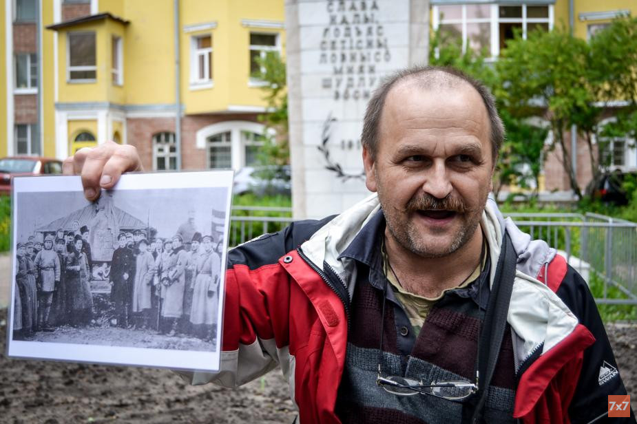 — В мае 1919 года в районе Усть-Кулома прошли бои, где погибло 14 красноармейцев. Их привезли сюда и, как в Москве, решили захоронить на центральной площади, именуемой в те времена в Сыктывкаре «Красной» в память о советской власти. С центральной ныне Стефановской площади захороненных перенесли туда, где сейчас и установлен памятник [на пересечении улиц Ленина и Куратова]. В 1922 году решили поставить что-то более основательное. Так появился сразу тумба, которая вызвала недовольство горожан — в основании было изображение женщины, которая показалась всем голой, архитектор утверждал, что она просто в тонкой тунике. В 1956 году появилась стела. В 1963 году, когда решили переоборудовать площадь и повесить мемориальную табличку, обнаружили, что вешать нечего, потому что имена и фамилии перезахороненных просто забыли. Известны только фамилии Беляева и Сметанина. Вот такое отношение к памяти и своим героям.