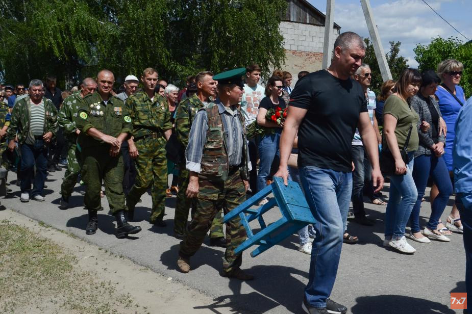 Проводить Владимира Грушина 16 июня жители Чемодановки вышли всем селом. Люди несли цветы, венки, табуретки ― на случай, если кому-то станет плохо на кладбище.