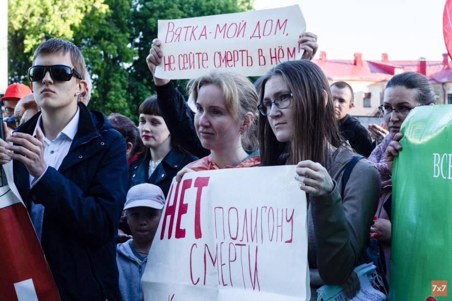 Жители Кирова 17 июня вышли на митинг против строительства комплекса по утилизации отходов высокого уровня опасности. Завод планируется возвести в поселке Мирном, где до сентября 2015 года на объекте «Марадыковский» уничтожали химическое оружие. Участники протестной акции заявили, что не верят словам властей о безопасности нового производства и не хотят жить и растить детей на загрязненной территории. Подробнее о митинге — в репортаже «7x7».